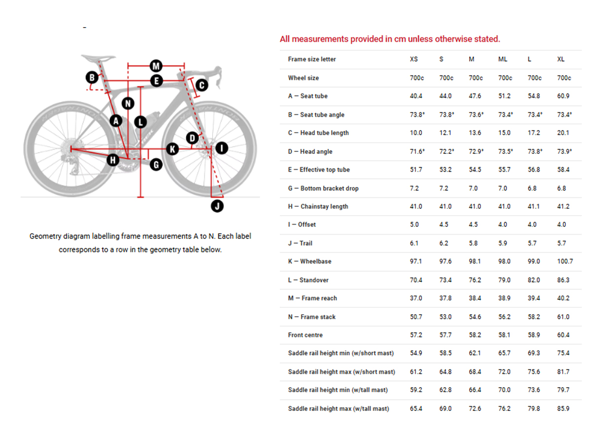 | ML (56 cm) | 173 to 179 cm / 5’8″ to 5’10” | 81 to 84 cm / 32″ to 33″ |