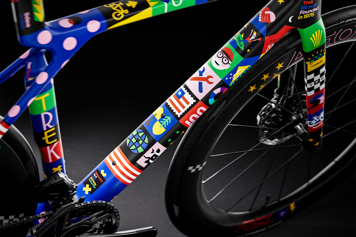 The artwork features illustrations representing the people, innovations, and defining moments that shaped Trek’s first five decades. Every surface reveals a new story — a hidden reference, a milestone, a memory. Trek’s editorial page breaks down each illustration for riders who want to explore the full narrative.