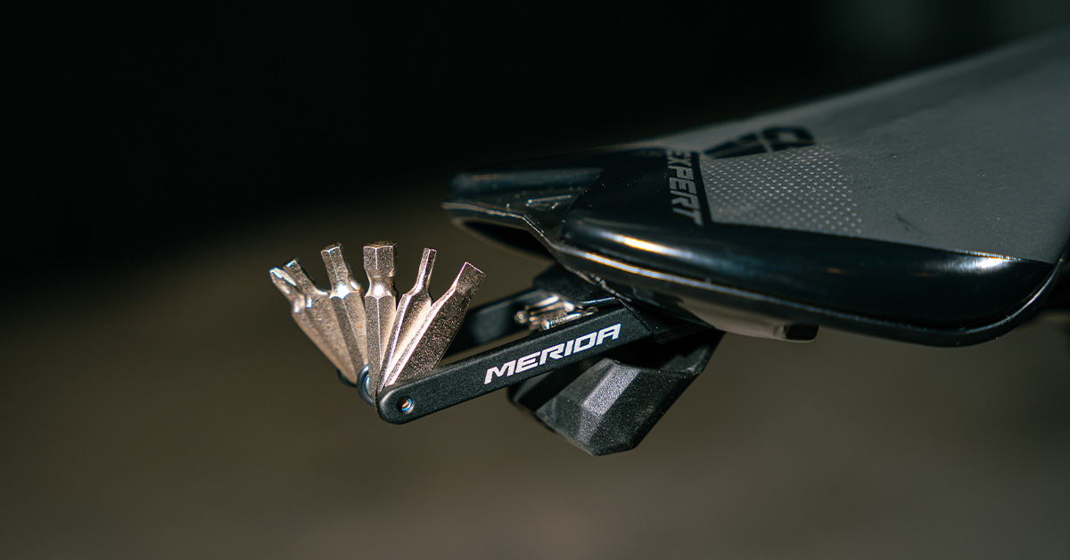 The Merida multi-tool is stored in a small rubberised case underneath the saddle so it’s quick and easy to access when you need it and is protected from the elements too. This small tool is a great little addition and is one less thing you have to remember to pack each time you head out on a ride.