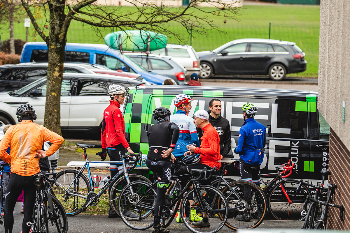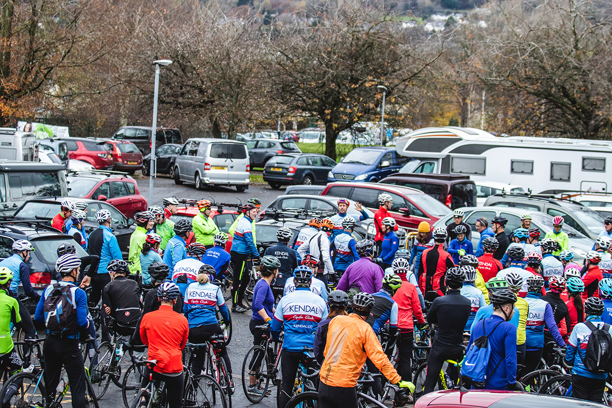 We were up early Saturday morning to team up with Kendal Cycle Club and Rapha for the KMF club ride to Grange. There were 85 keen roadies who arrived for the ride and headed out from Kendal Leisure Centre on mostly flat roads towards Grange and returned in time for the afternoon Rapha Road Bike session.