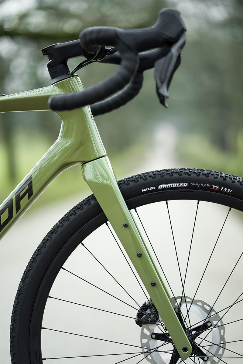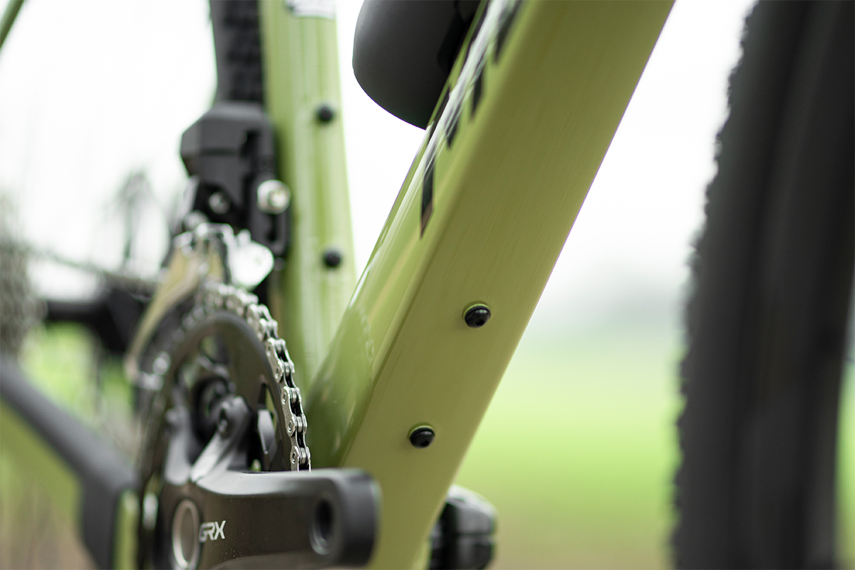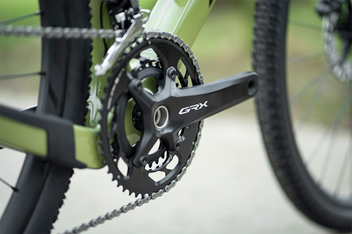 Hydraulic GRX820 disc brakes with 180mm rotors provide powerful, consistent stopping performance. On carbon models, the calipers sit on CNCd aluminium Disc Cooler fins, reducing heat build‑up by up to 35 percent — a real advantage when riding fully loaded or tackling long descents.