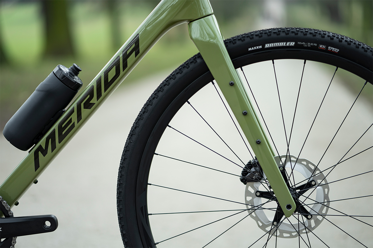 At the heart of the Silex 8000 is Merida’s CF2 carbon II frame, designed for stability, comfort and durability. With five sets of bottle bosses, internal routing for dropper posts and dynamo systems, and compatibility with full luggage setups, it is built for everything from fast gravel loops to multi‑day expeditions.