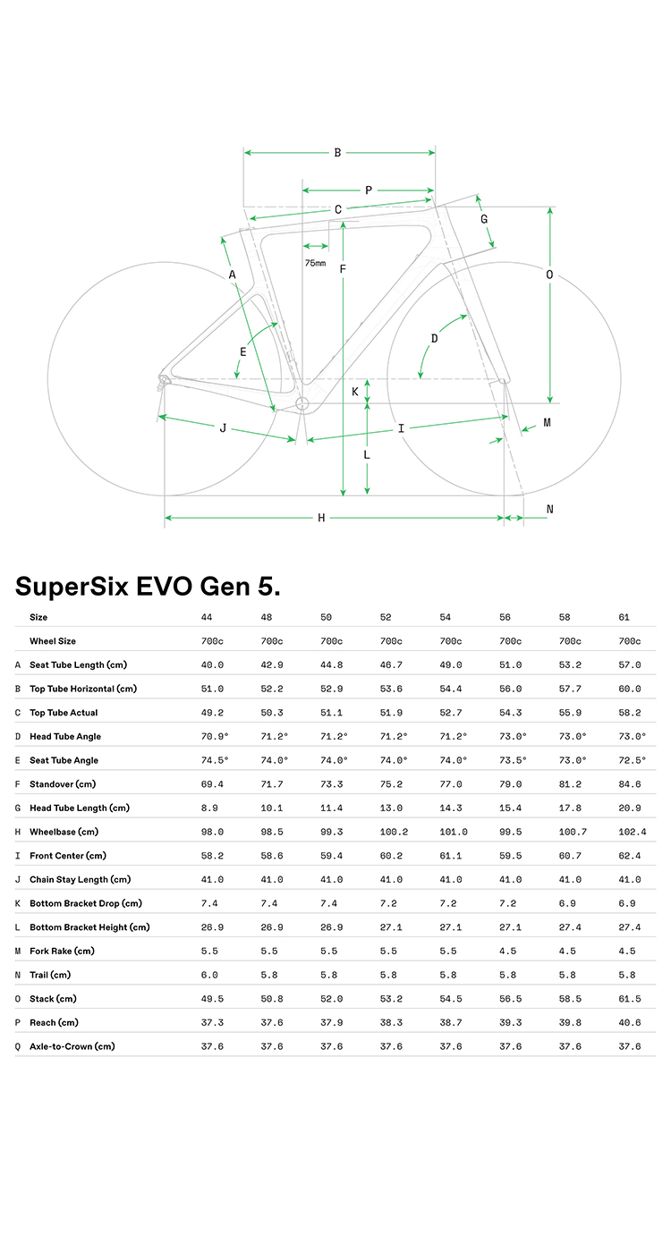 - Superlight, low drag Gen 5 SuperSix EVO frameset. Hi-MOD carbon construction – incredibly light and responsive