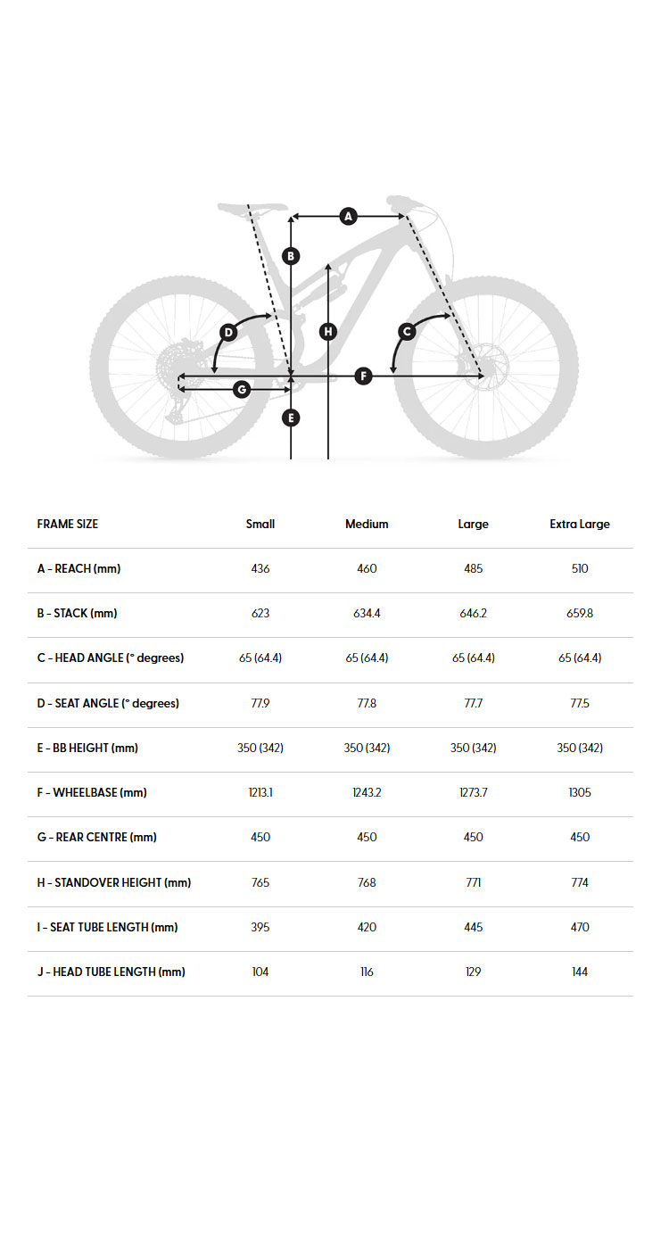 Frame: Uni-directional carbon mainframe, 6061 alloy swing arm, Shape.it Link V2, 12mm x 148mm Boost dropouts